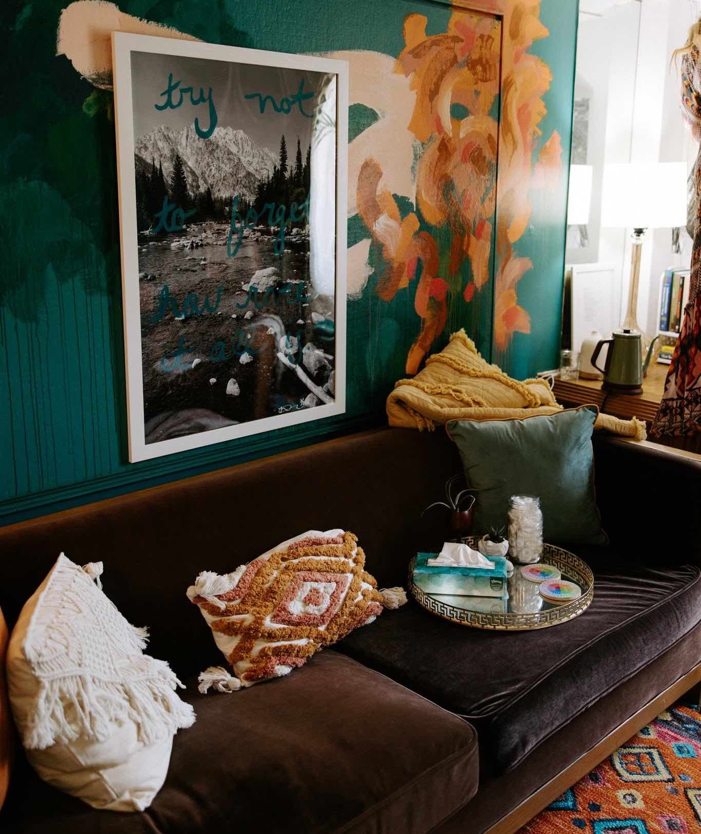 I created the first of these works when designing my therapy office. Prior to designing my room, I became very interested in neuroaesthetics and made each design choice and creation with intention with my clients in mind. Neuroaesthetics is an emerging field of study that explores how architecture, design, art, and music affect the brain, mental/emotional wellness, and human behaviors.